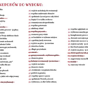 Kupony miłości zdrapki – to idealny prezent dla drugiej połówki na rocznicę, walentynki, dzień chłopaka, jak również na tysiąc innych okazji.